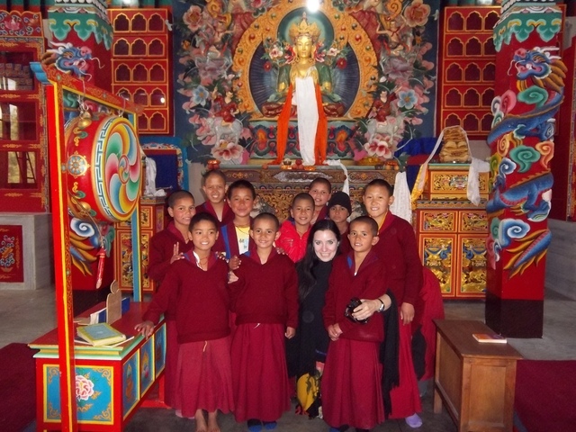 Nuns with Eileen in Redna Menling Nunnery Temple, Menri